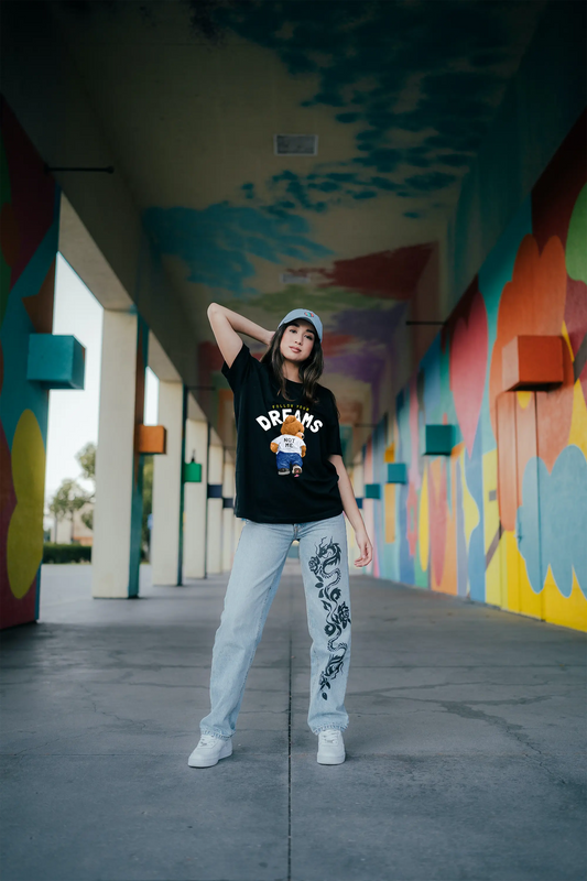 Follow Your Dreams Teddy Black Oversized T-shirt